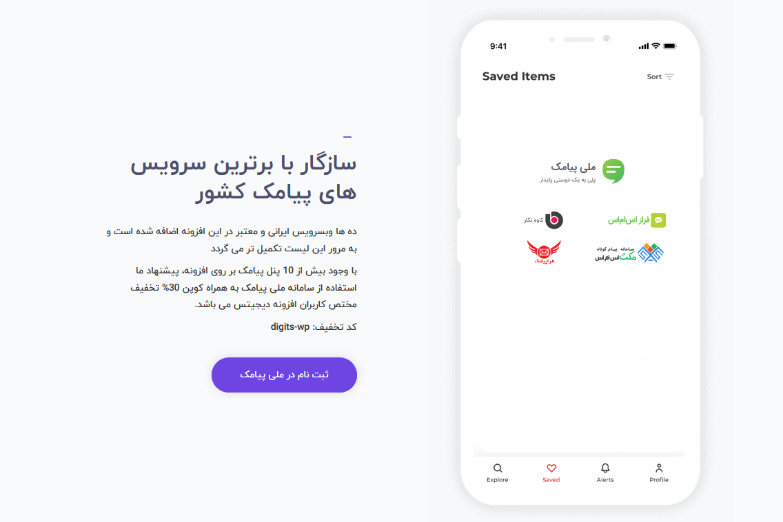 پنل های پیامکی پشتیبانی شده در سیستم Digits فارسی: