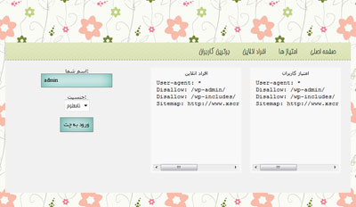 قالب گل ها برای ET Chat 4,355 بازدید بدون نظر قالب گل ها برای ET Chat : این قالب شامل صفحه ورودی و صفحه چت می باشد و سرعت لود خوبی دارد.